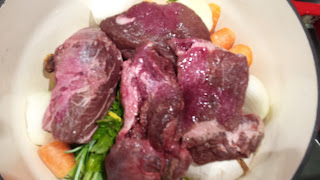 - Braised short rib of beef, Galbi, white kimchi, stuffed courgette. potato & crispy anchovies (Galbi jjim)